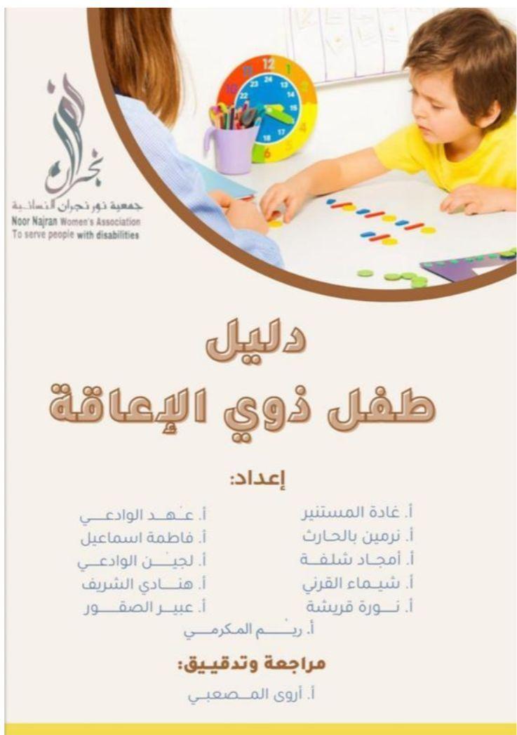 أطلقت جمعية نور نجران لخدمة ذوي الإعاقة كتاب يحمل عنوان (دليل طفل ذوي الإعاقة) الذي تم تسجيله في وزارة الإعلام وأخذ الفسح للنشر من مكتبة الملك فهد الوطنية برقم 202310123993858.