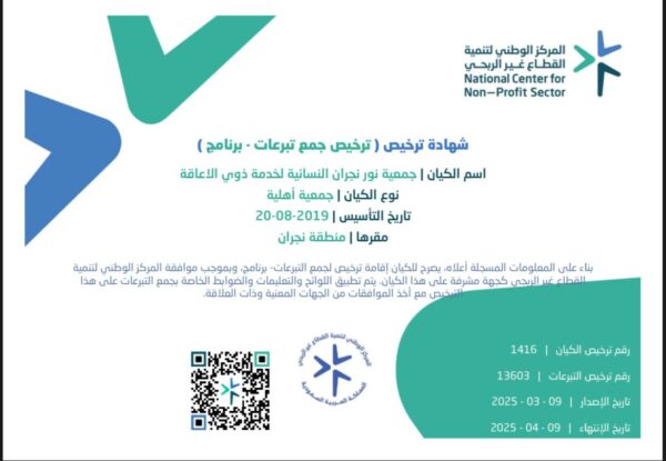 اللائحة الأساسية لجمعية نور نجران النسائية لخدمة ذوي الإعاقة